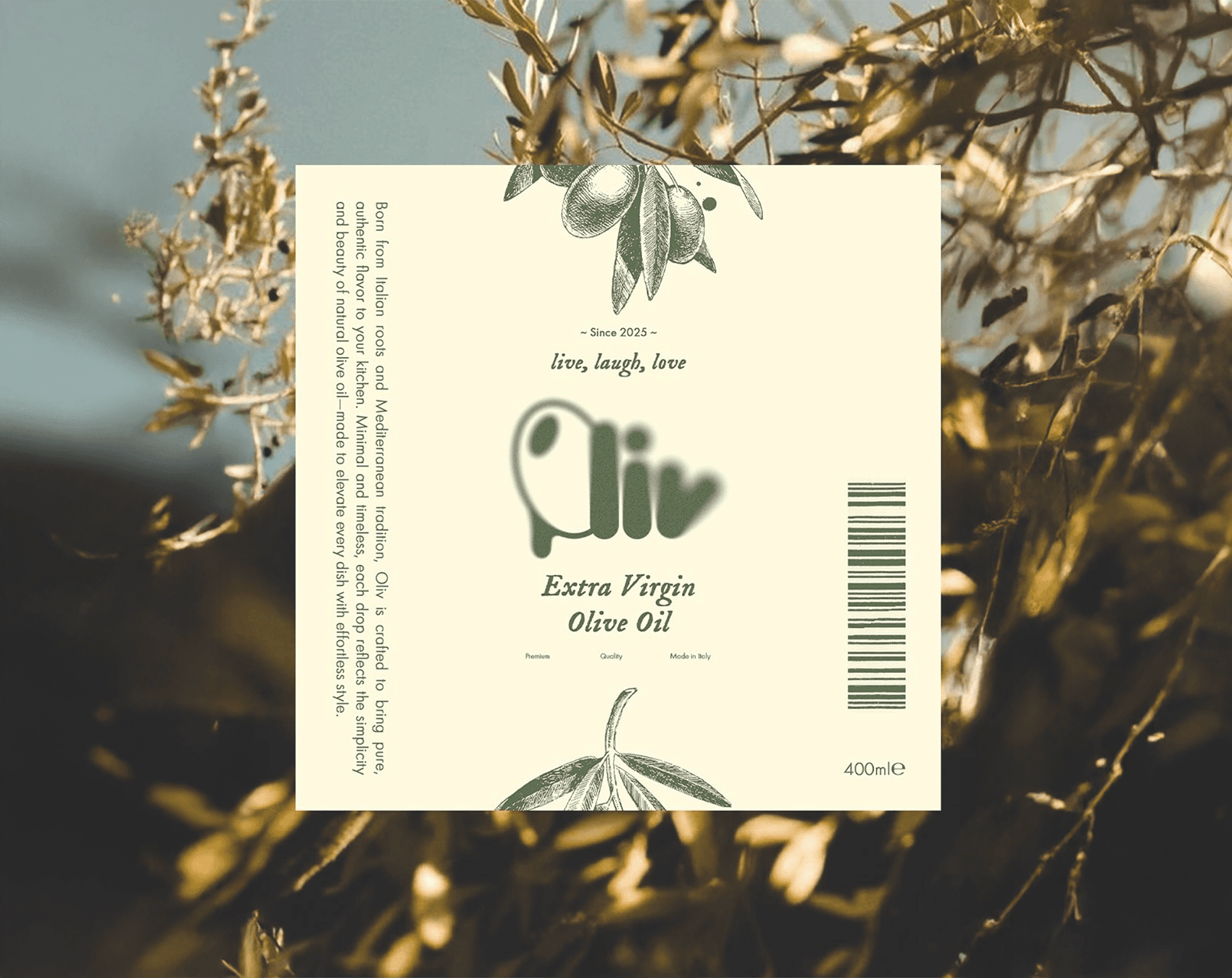 Oliv was born from a desire to explore the intersection of Mediterranean heritage and the modern "slow living" aesthetic. The goal was to transform a kitchen staple, olive oil, into a centerpiece of design. I wanted to create a brand that doesn't just sit in a cabinet but earns its place on the countertop as a lifestyle object.